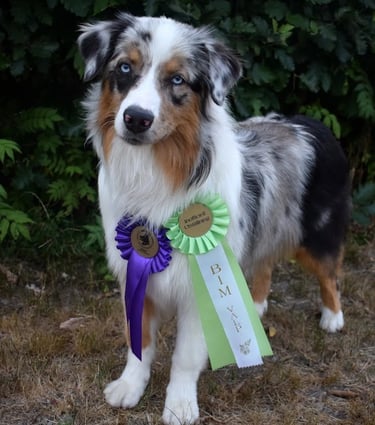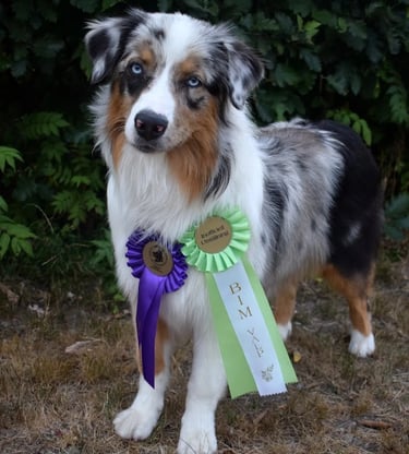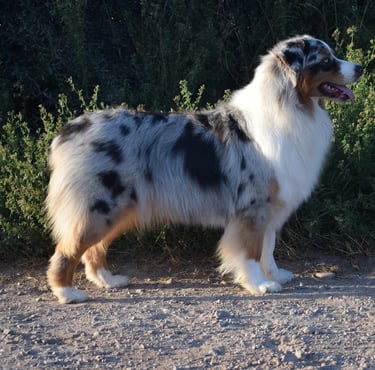 Färg: Blue merle vit & tan